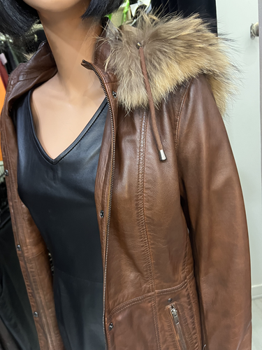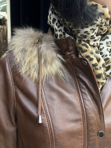 La veste 3/4 en cuir avec capuch et fourrure : le secret d’une garde-robe hivernale irrésistible.