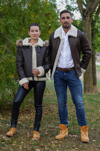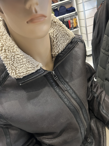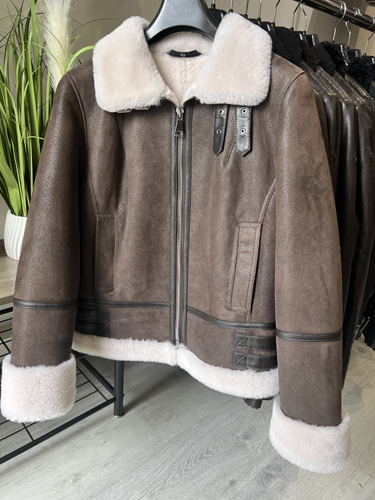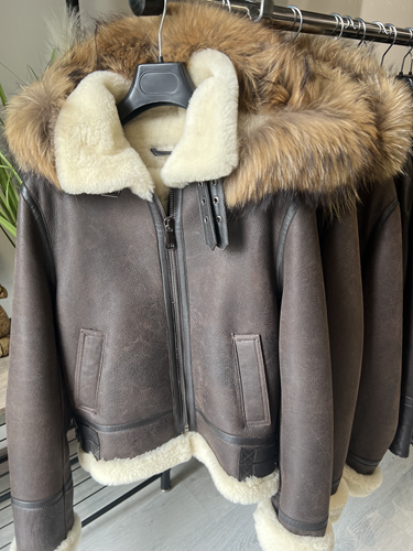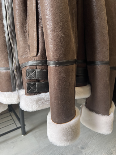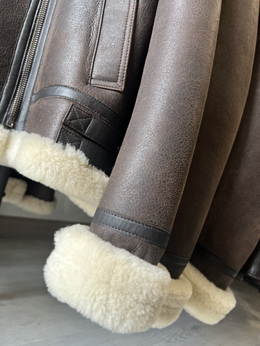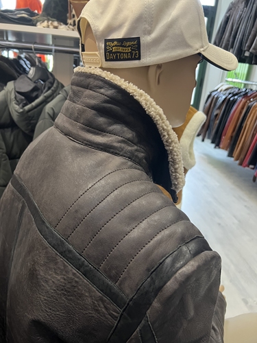 - Création :Dans les années 1920, le parachutiste américain Leslie Leroy Irvin imagine la première version du blouson, appelée « The Irvin » ou flying jacket ». Sa conception utilise de la peau de mouton retournée, offrant un isolant thermique naturel exceptionnel grâce à la laine et un large col pour protéger le cou. Le blouson cuir bombardier, plus épais et chaud, en peau de mouton doublée de sa propre fourrure, destinée aux pilotes de bombardiers et de chasses. Le nom « bombardier » est ainsi directement inspiré des avions bombardiers