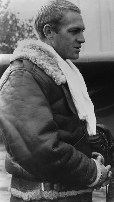 - Evolution et symbole : Après la Seconde Guerre Mondiale, le blouson quitte l’uniforme militaire pour entrer dans la culture populaire. Porté par des icônes comme Marlon BRANDON dans On the Waterfront (1954) ou Steve McQueen dans The War Lover, il incarne une symbolique de courage, de liberté et de rébellion. Il est introduit en France par la marque Chevignon dans les années 80.